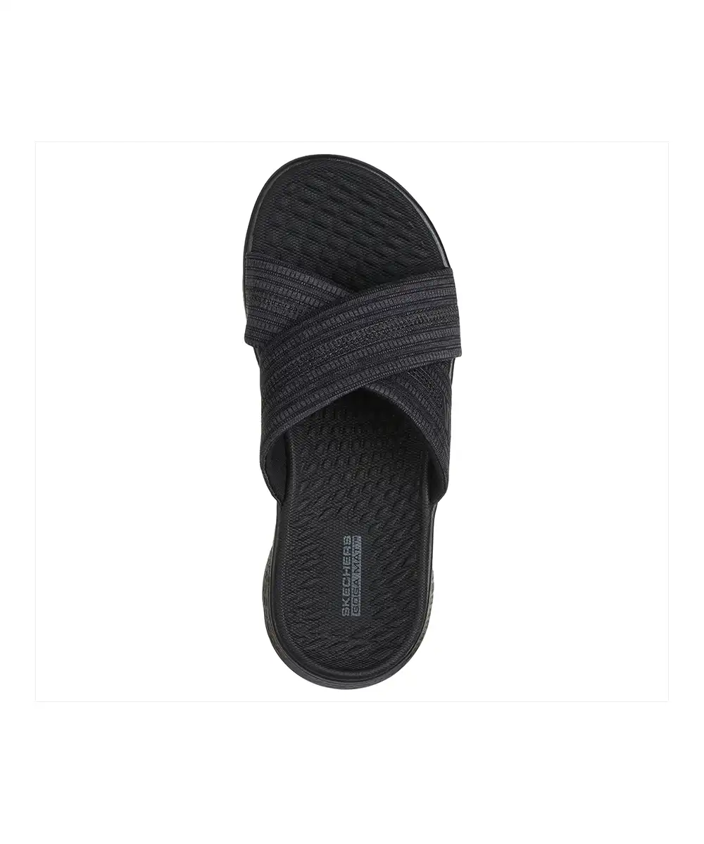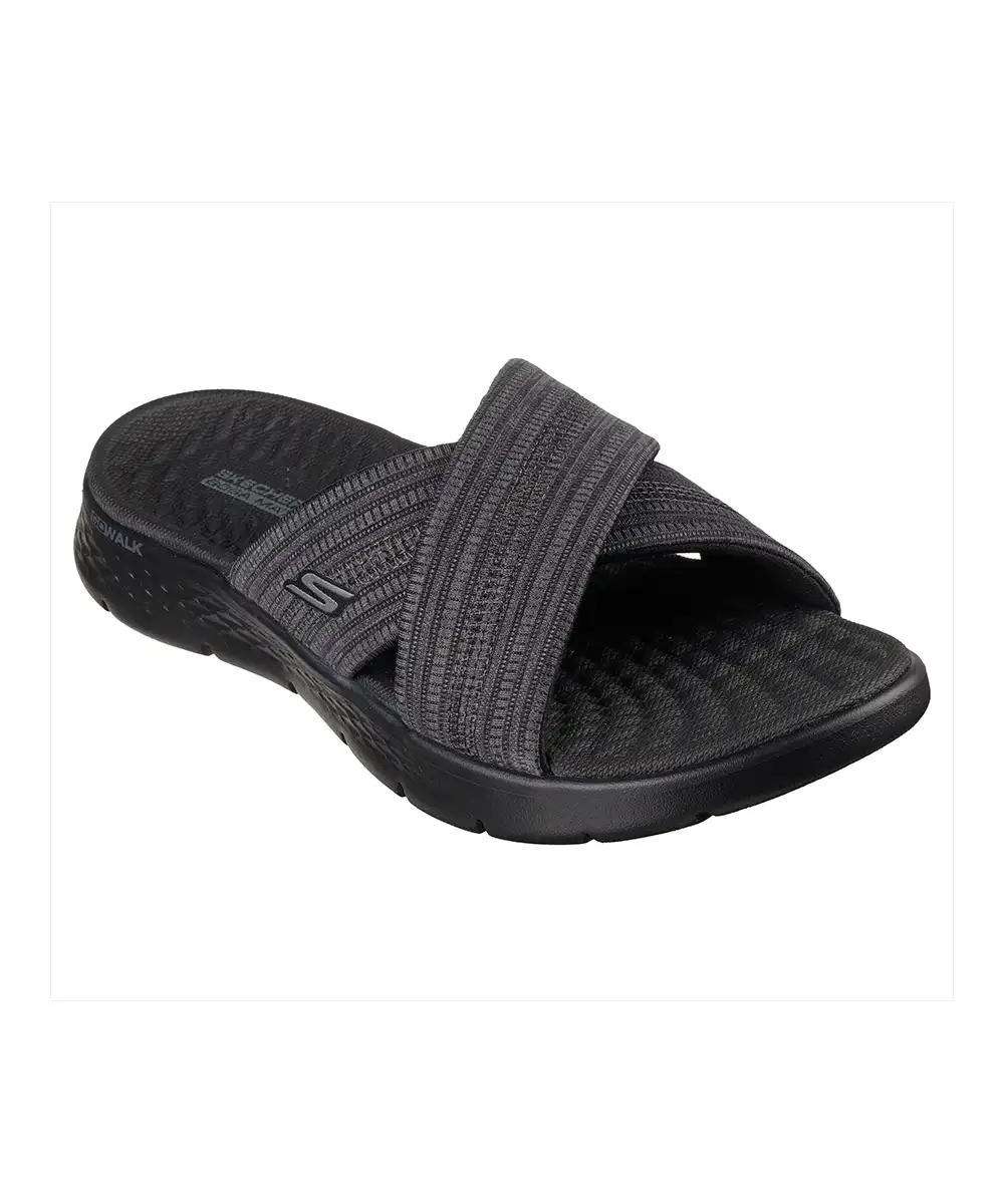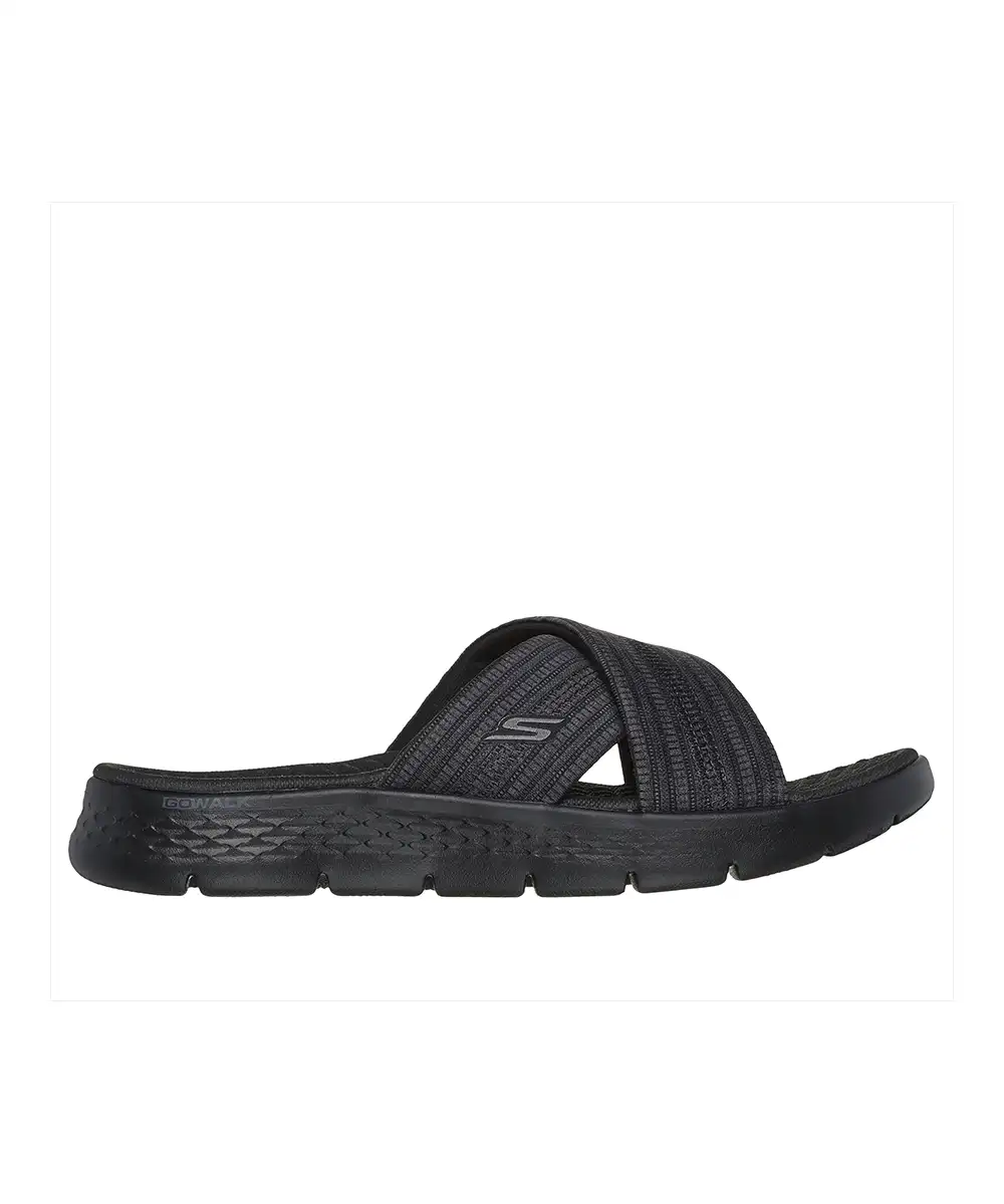 Treat your feet with ultimate comfort and style wearing Skechers GO WALK Flex™ Sandal – Impressed. This vegan slide design features a woven memory foam fabric cross-strap upper with a contoured Goga Mat® footbed, and lightweight ULTRA GO® cushioning.